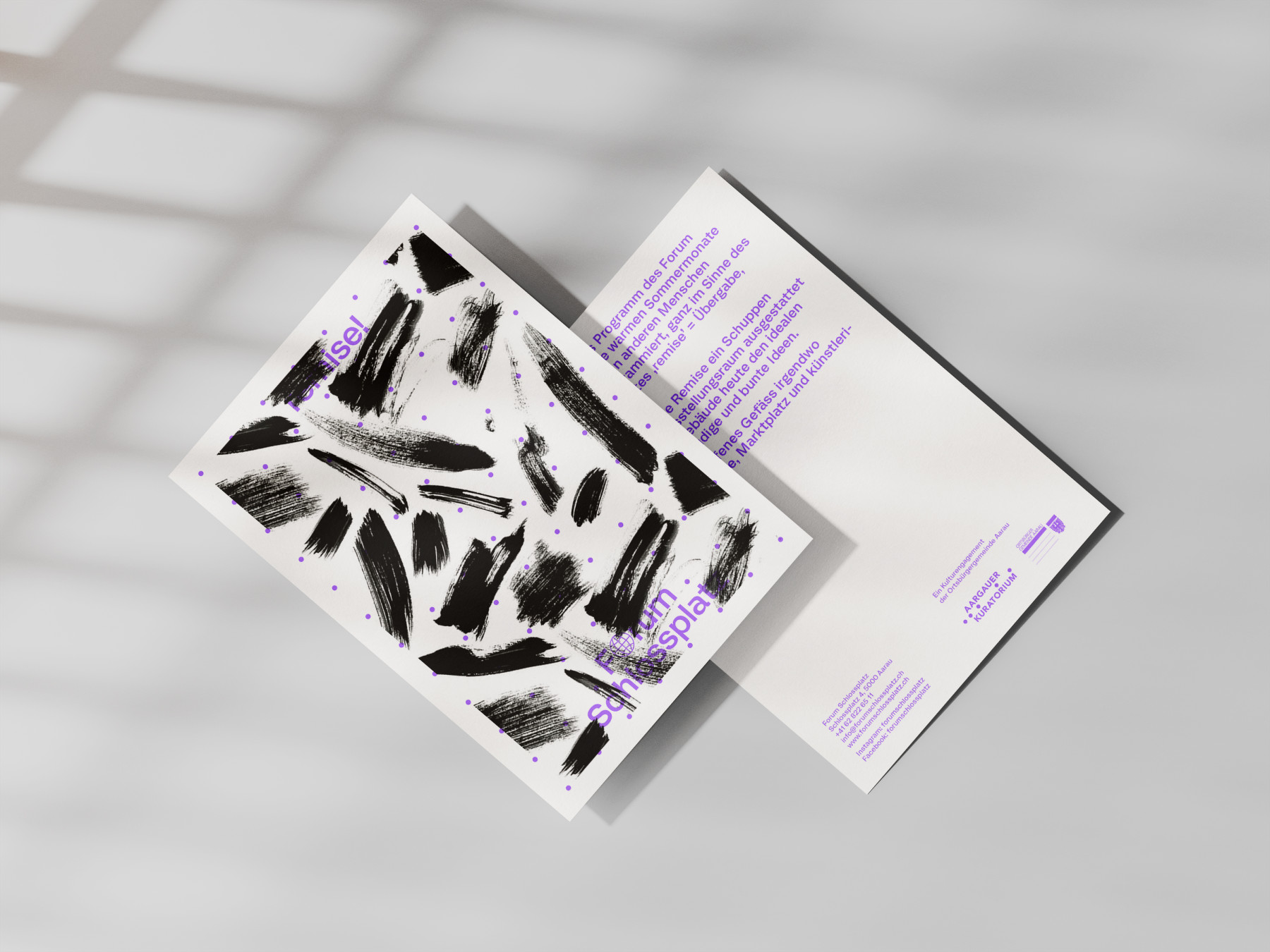 Forum Schlossplatz has been a cornerstone of Aarau’s cultural life since 1994. Nestled just behind the old town’s main square in a villa with a hidden garden, it balances public engagement with intimate moments, city-centre energy with quiet retreat. In 2022, under new leadership by Lena Friedli, the institution rethought its visual identity—not simply to refresh its look but to capture how Forum Schlossplatz truly operates: open, playful, collaborative, and rooted in the city.
